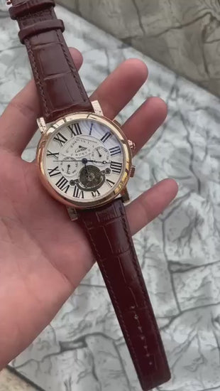 Cartier Automatic White Dial Leather Belt Watch For Men